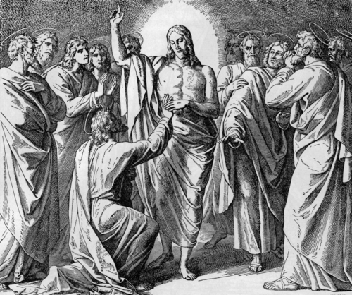On the evening of that day, the first day of the week, the doors being shut where the disciples were for fear of the Jews, Jesus came and stood among them and said to them, “Peace be with you.” When He had said this, He showed them His hands and His side. Then the disciples were glad when they saw the Lord. Jesus said to them again, “Peace be with you. As the Father has sent Me, even so I send you.” And when He had said this, He breathed on them and said to them, “Receive the Holy Spirit. If you forgive the sins of any, they are forgiven; if you retain the sins of any, they are retained.” Now Thomas, one of the twelve, called the Twin, was not with them when Jesus came. So the other disciples told him, “We have seen the Lord.” But he said to them, “Unless I see in His hands the print of the nails, and place my finger in the mark of the nails, and place my hand in His side, I will not believe.” Eight days later, His disciples were again in the house, and Thomas was with them. The doors were shut, but Jesus came and stood among them and said, “Peace be with you.” Then He said to Thomas, “Put your finger here, and see My hands; and put out your hand, and place it in My side; do not be faithless, but believing.” Thomas answered Him, “My Lord and My God!” Jesus said to him, “Have you believed because you have seen Me? Blessed are those who have not seen and yet believe.” Now Jesus did many other signs in the presence of the disciples, which are not written in this book; but these are written that you may believe that Jesus is the Christ, the Son of God, and that believing, you may have life in His name.